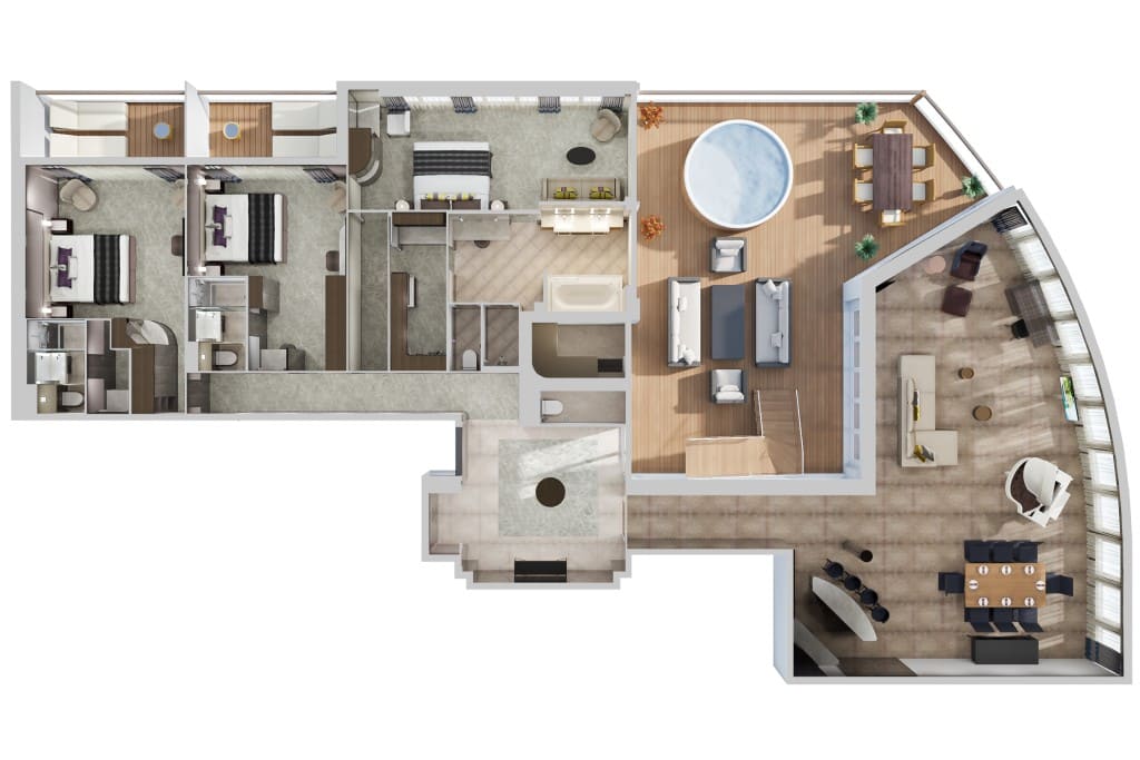 Čo sa týka ubytovania, loď ponúka nekonečné možnosti. Či už hľadáte rodinnú dovolenku alebo romantický únik, jej sofistikovaný dizajn a prvotriedne vybavenie z nej robia vynikajúcu voľbu pre každého.
